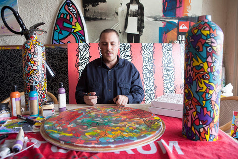 We are honoured to have worked with Sydney based artist, Saxon Duke, who created a bespoke piece as the central feature across our latest collection. A man of many attributes, Duke has been super successful in the professional industry. He has played major roles as senior director and art director at some esteemed agencies in Sydney, and has been recognised in his personal expression, across many mediums and canvases that aren't always stretched across a frame.